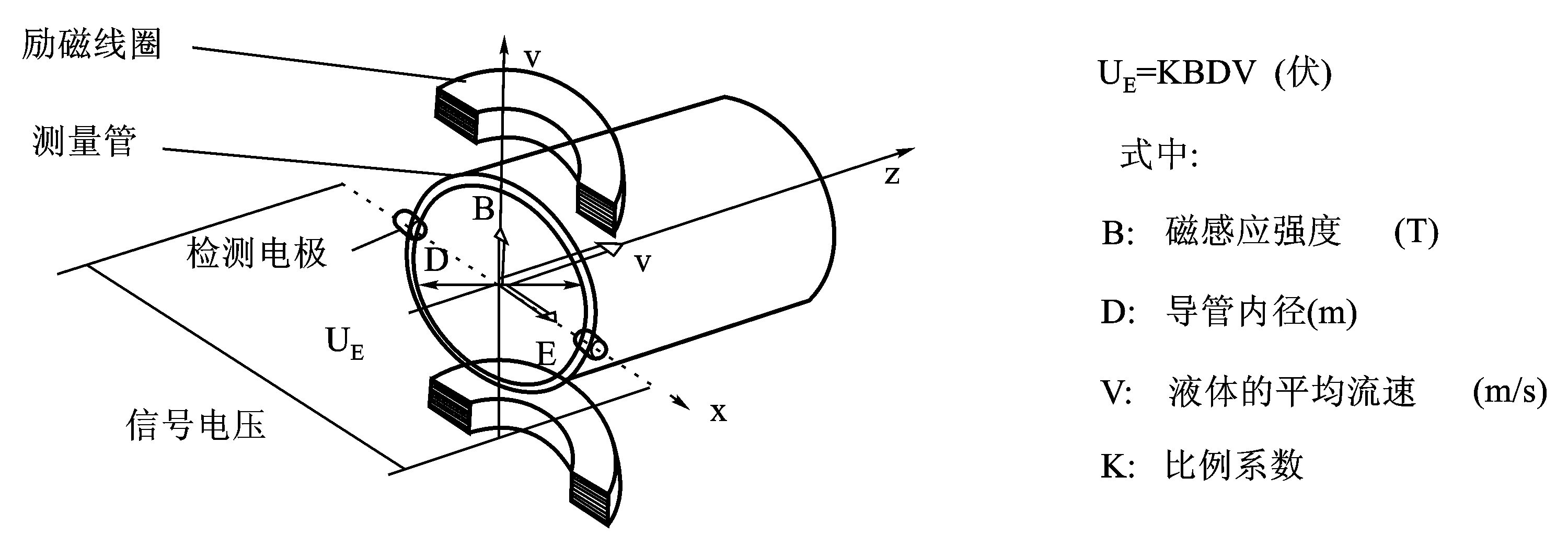 電磁流量計是運用電導率均勻的液體,在磁場B中內徑為D,管內以流速V流動時,按法拉第電磁感應定律感應電勢E=K·B·D·V(式中K為常數)來工作的。在該基本公式中感應電勢E不受電導率和液體溫度、壓力、密度、粘度的直接影響。但實際上電導率還因以下原因受到影響:
