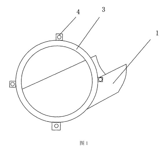 下面結(jié)合附圖和實(shí)施例對(duì)本實(shí)用新型做進(jìn)一步描述。雖然本實(shí)用新型將結(jié)合較佳實(shí)施例進(jìn)行描述,但應(yīng)知道,并不表示本實(shí)用新型限制在所述實(shí)施例中。相反,本實(shí)用新型將涵蓋可包含在有附后權(quán)利要求書(shū)限定的本實(shí)用新型的范圍內(nèi)的替換物、改進(jìn)型和等同物參見(jiàn)圖1至圖4所示,本電磁流量計(jì)耐磨裝置由相向的兩塊彎曲帶法蘭3的耐磨板1組成,耐磨板1為不銹鋼板,厚3mm,其外徑彎曲度和需配套的流量計(jì)管體5內(nèi)徑相符,和襯膠緊貼,耐磨板1彎曲后的弧度高須低于感應(yīng)電極6有5mm-10mm。,相連的法蘭3材質(zhì)也為不銹鋼,厚度無(wú)要求,直徑和需配套的流量計(jì)管體5一致,法蘭3用螺釘孔4固定在電磁流量計(jì)管體5的法蘭上。彎曲的耐磨板1和法蘭3用氬弧焊焊接在一起,在其中一塊彎曲的耐磨板1上再加焊一塊彎曲的搭板2,使污泥漿流經(jīng)耐磨板1時(shí)保證不發(fā)生停留和沉淀。本實(shí)用新型的耐磨板1不做成單一整體,做成左右兩半,主要是考慮這樣做工藝制作簡(jiǎn)單,容易和流量計(jì)襯膠緊貼不產(chǎn)生空隙,做成兩半拆裝也方便,由于不銹鋼不吸收磁場(chǎng)磁力線,法蘭3和流量計(jì)管體5法蘭連接相當(dāng)于接地,因此本實(shí)用新型的電磁流量計(jì)耐磨裝置既沒(méi)有減弱感應(yīng)電動(dòng)勢(shì)的輸出,也沒(méi)有形成新的干擾源,所以對(duì)電磁流量計(jì)的工作沒(méi)有影響該電磁流量計(jì)耐蘑裝置結(jié)構(gòu)簡(jiǎn)單,成本低廉,更換或增添方便,理論上材質(zhì)只要不是鐵都可以,但以不銹鋼*為合算。該電磁流量計(jì)耐磨裝置也可用于采礦作業(yè)和其他一切有液固兩相體的管道