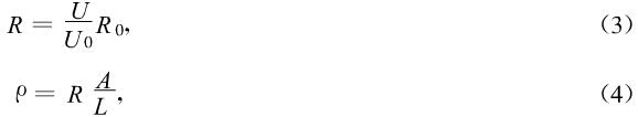 式中:卩為電阻率;U為裝有煤泥的圓柱狀絕緣料筒兩端電壓;U0為.定值電阻兩端的電壓;A為橫截面積;L為兩電極之間的距離.采用四相電極參比電阻法測量煤泥電阻率,設計實驗電路如圖3所示.實驗步驟如下:①首先測量絕緣料筒內(nèi)徑及長度.用游標卡尺多次從不同角度測量絕緣料筒的內(nèi)徑及長度并記錄,分別取平均值.②測量室內(nèi)溫度并記錄.③取適量煤泥加入一定的水,充分攪拌,用含水率儀測量含水率并記錄,使含水率為
