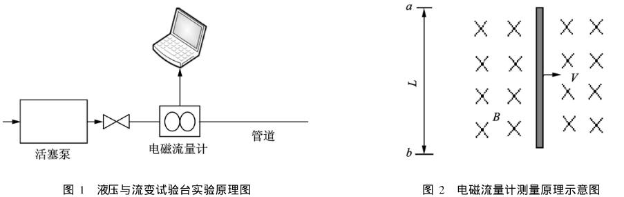 本文選用不同質(zhì)量濃度的煤泥在裝有電磁流量計的液壓與流變試驗臺上(實驗原理如圖1)進行管道輸送實驗.電磁流量計根據(jù)電磁感應原理測量流過管道中導電流體旳流量.故使用電磁流量計的前提是被測流體必須導電。且電導率不能低于閾值(即下限值).通用型電磁流量計的閾值在(5×106)S/cmI04S/cm之間、若電導率低于閾值會產(chǎn)生誤差甚至不能測量.根據(jù)電磁感應原理(如圖2),當導電流體在磁場強度為B的磁場中切割磁力線時,在線形長度為L的a和b兩點之間會產(chǎn)生感應電動勢.為