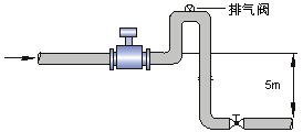 若管道落差超過5m時(shí),在傳感器的下游安裝排氣閥;