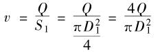 設(shè)實(shí)際流量為 O ,測(cè)量流量為 O1,標(biāo)定時(shí)測(cè)量通道直徑為D,截面積為 S ,實(shí)際測(cè)量通道直徑為 D1,截面積為 S1 ,流速為 "。當(dāng)流量計(jì)測(cè)出流量頻率值后,根據(jù)標(biāo)定圖版可換算為流量,此時(shí)計(jì)算采用的是標(biāo)準(zhǔn)過(guò)流通道內(nèi)徑,瞬時(shí)測(cè)量流量應(yīng)為: