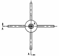 為了實(shí)現(xiàn)過(guò)油管測(cè)量,縮短儀器長(zhǎng)度,在設(shè)計(jì)上可將電磁流量計(jì)的一個(gè)扶正器設(shè)計(jì)為井徑測(cè)量?jī)x,其 4條扶正片作為4個(gè)測(cè)量臂。