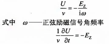 渦電場法的理論基礎為:電磁流量計測量過程中,交變的磁場將伴隨產(chǎn)生渦電場,該電場不受流速分布的影響,通過測量電磁流量計電極所在位置渦電場強度測取一次傳感器轉(zhuǎn)換系數(shù)。當一次傳感器管段內(nèi)速度分布平坦時,對于正弦信號勵磁磁場的一次傳感器,有效區(qū)域內(nèi)任意點的速度v、電勢U以及渦電場強度在管段軸向方向的分量Ez具有如式,所示關(guān)系,對于矩形脈沖信號勵磁磁場則如式所示向