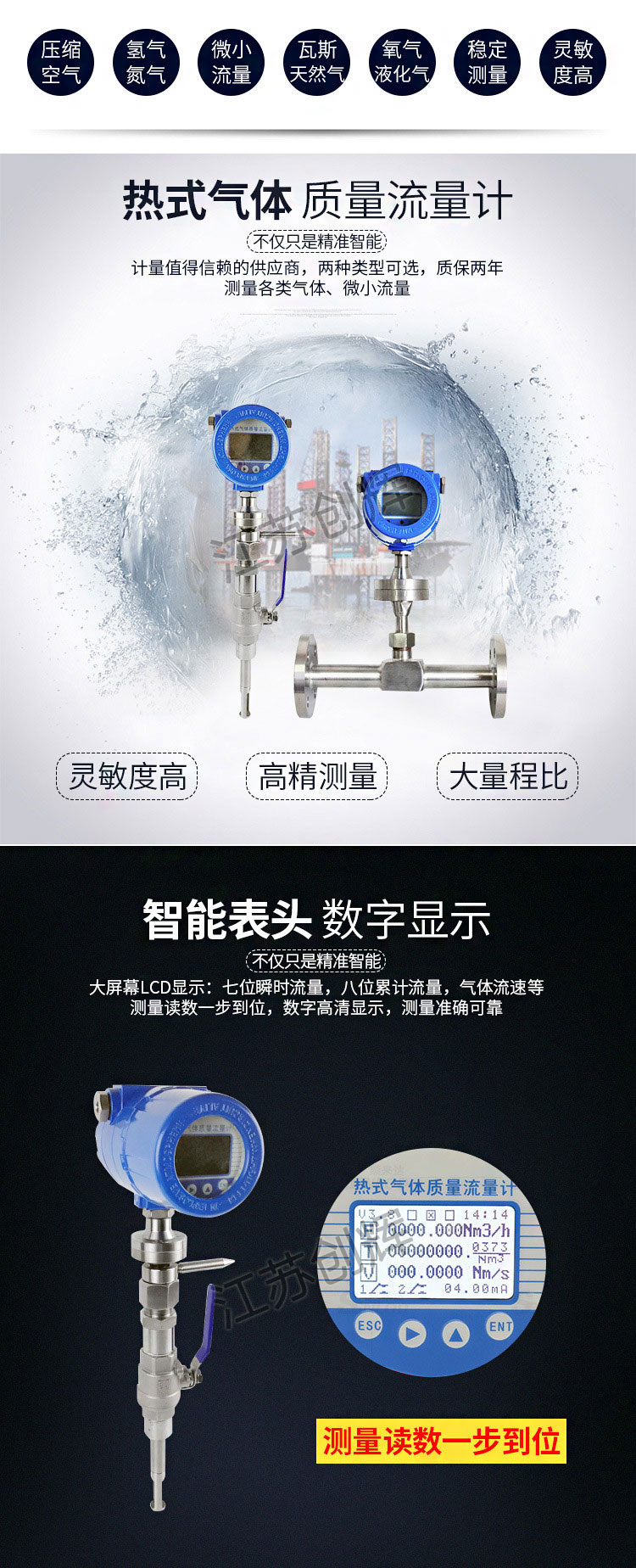 1、測量氣體質(zhì)量流量,無需溫度、壓力補償。