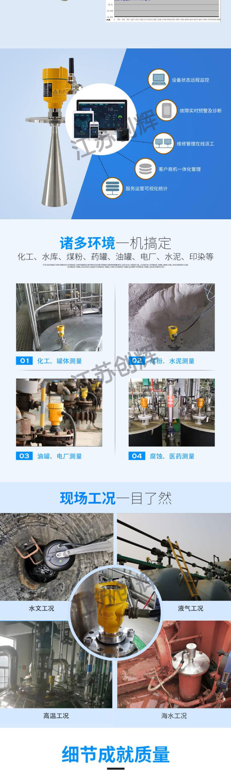 CH-RD900系列傳感器是26G防腐雷達式物位測量儀表,測量ZUI大距離可達70米。天線被進一步優(yōu)化處理,新型快速的微處理器可以進行更高速率的信號分析處理,使得儀表可以用于反應釜、固體料倉等一些復雜的測量條件。