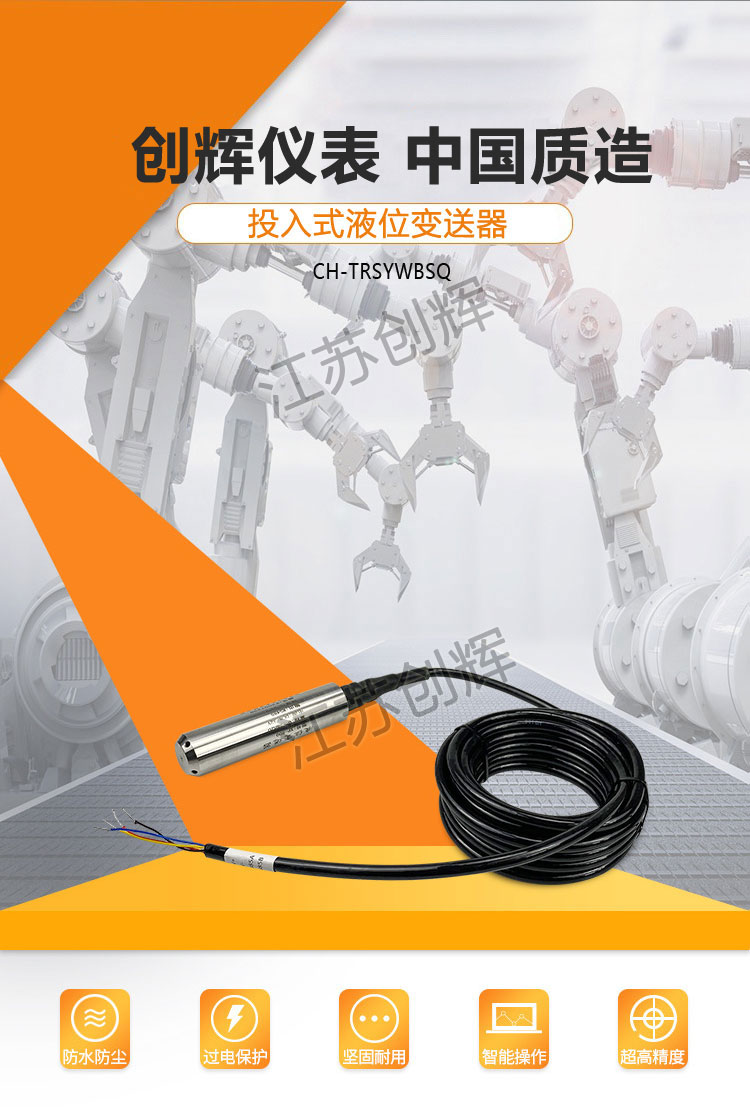 CH-TRSF系列防腐投入式液位變送器是基于所測(cè)液體靜壓與該液體的高度成比例的原理,采用國(guó)外**的隔離型擴(kuò)散硅敏感元件的壓阻效應(yīng),將靜壓轉(zhuǎn)換為電信號(hào),再經(jīng)過(guò)溫度補(bǔ)償和線性修正,轉(zhuǎn)化成標(biāo)準(zhǔn)電信號(hào)(一般為4~20mA)。